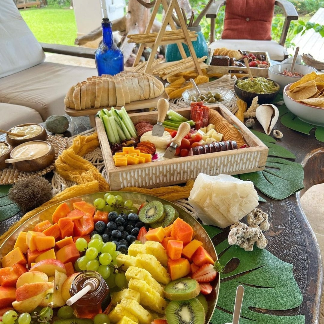 Elegant serving boards, platters, and décor elements (candles, greenery, florals)
