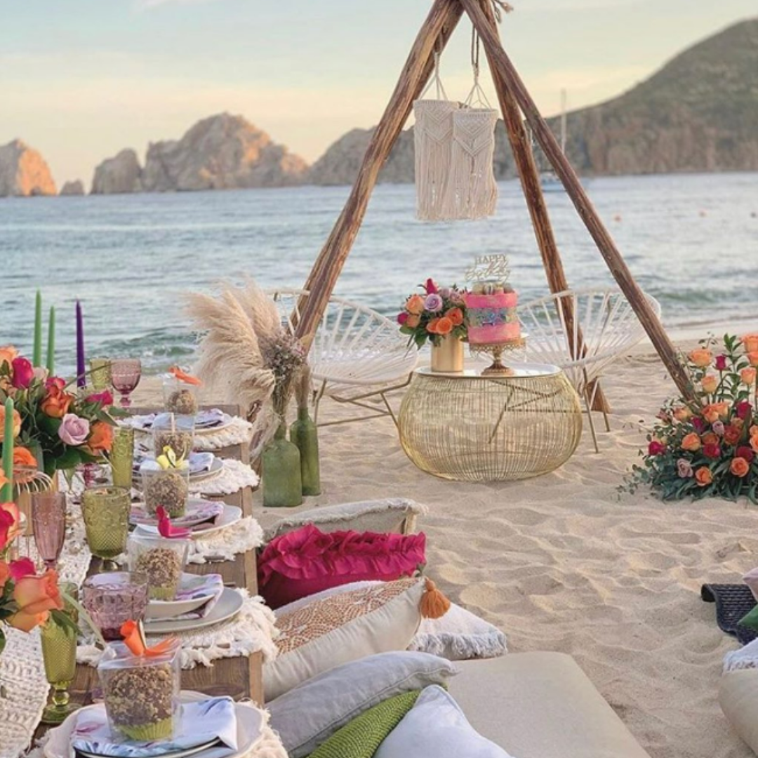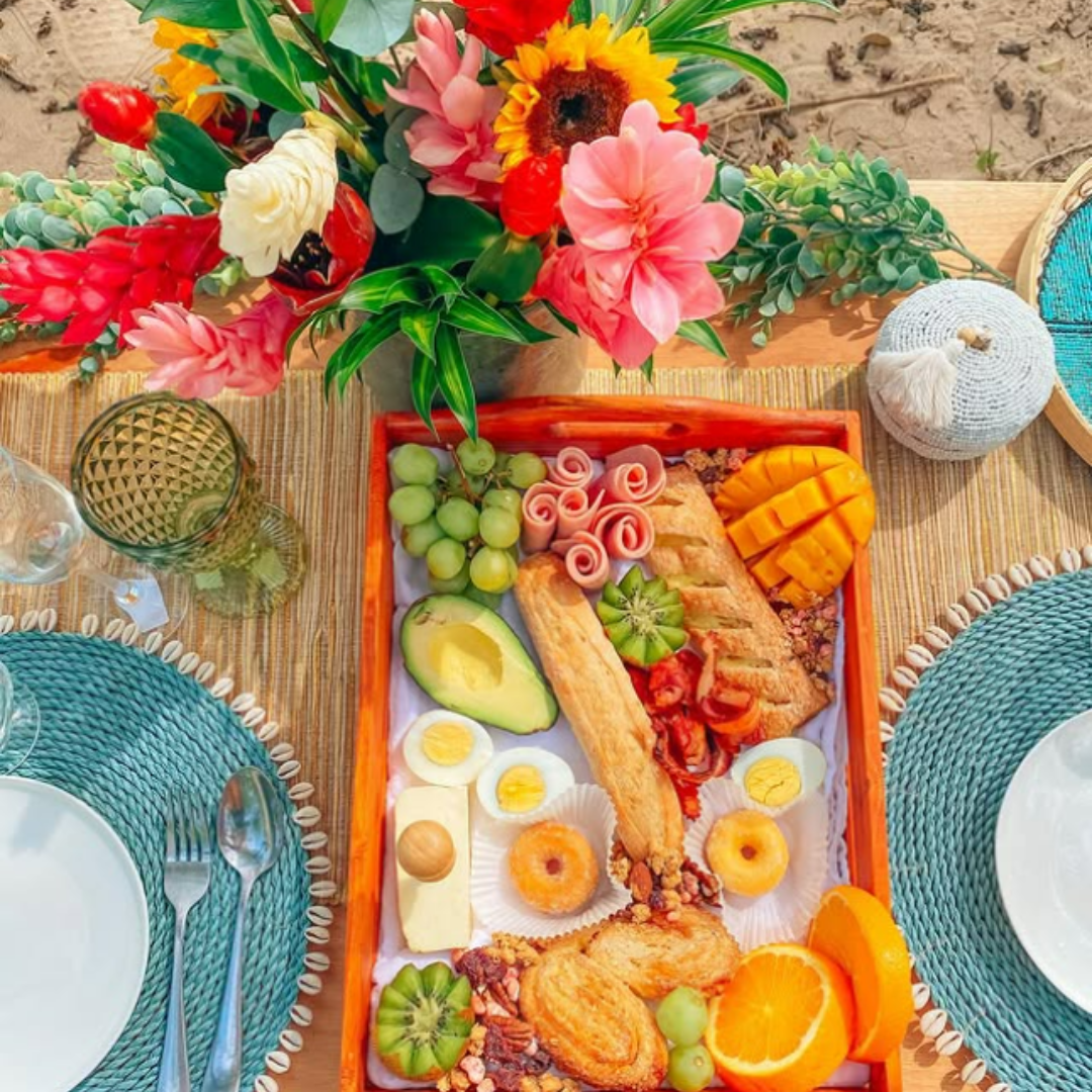 Elevate your beach day with our signature luxury picnic experiences featuring tropical-inspired cuisine. We transform ordinary beach settings into stunning dining destinations with complete beach decoration—creating Instagram-worthy scenes with stylish décor, bohemian touches, and elegant table settings.